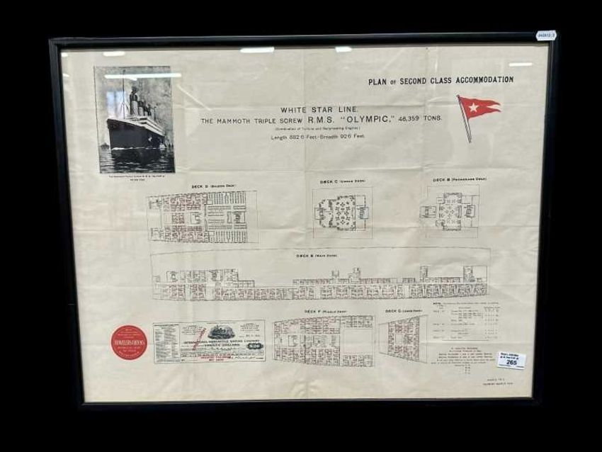Rare printed plan of Second-Class accommodation. 18ins. x 25ins.