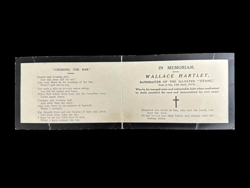 Rare Wallace Hartley In Memorium mourning card with black border.