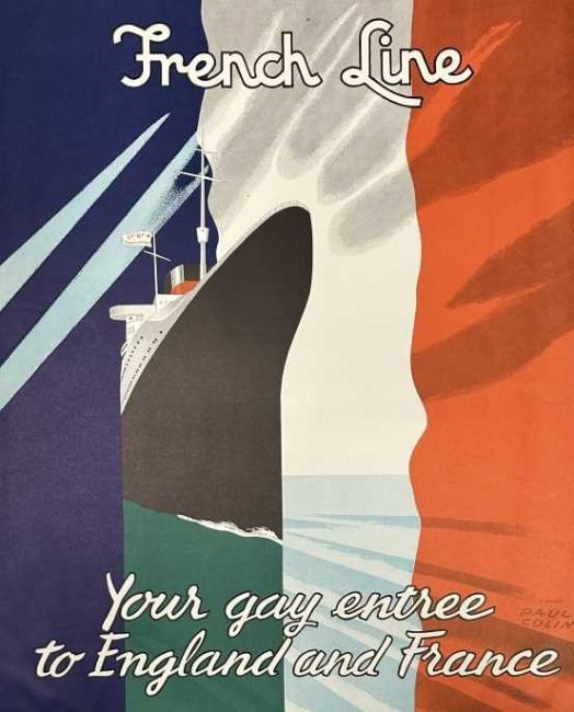 French Line Your Gay Entree to England and France by Paul Colin. 32ins. x 26ins.