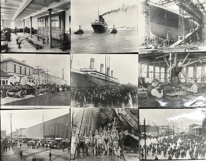 Daily Graphic In Memoriam Edition 'Wreck of The Titanic' sheet music and a collection of nine Harland & Wolff reprinted photographs. 10ins. x 8ins.