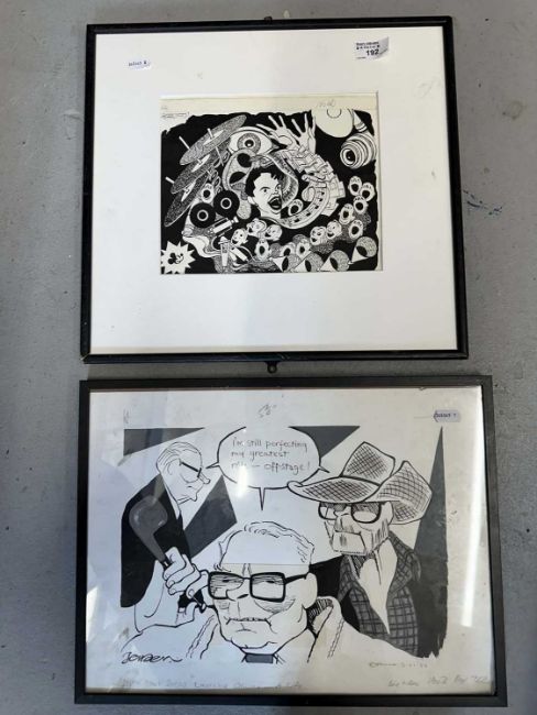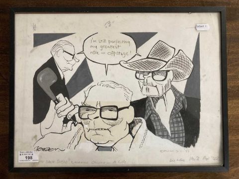 Original Punch artworks. Punch 1982 by Hewisson of Laurence Olivier South Bank Show review and Punch 1950 by Sheriff of Judy Garland "A Star is Born"