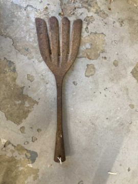 19th cent. Cast Iron: Fireback with classical angel relief. 80cm x 60cm. Plus an early 19th cent. Iron eel spike, no handle, 56cm long.