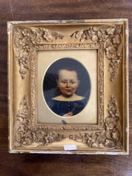 Edward Goodwyn Lewis (1827-1891): Two naive studies of a boy and a girl, framed under glass, head and shoulders in an oval mount.