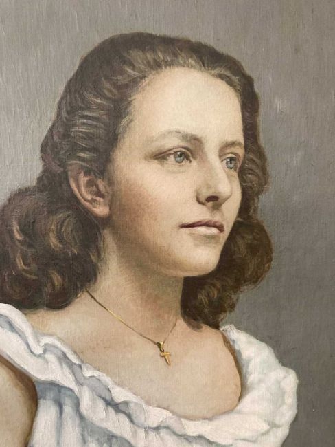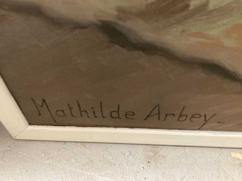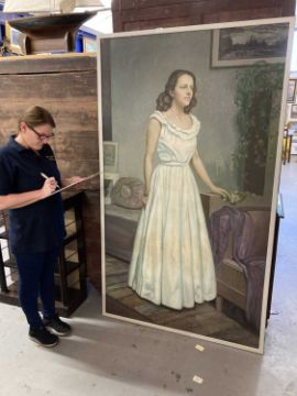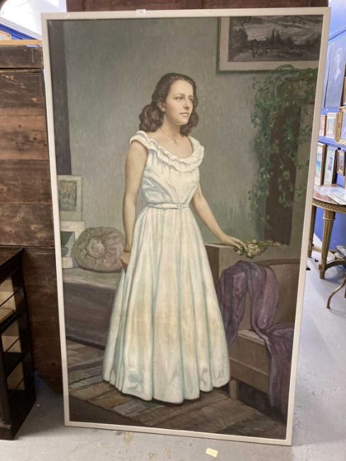Mathilde Arbey (1890-1966): Substantial oil on canvas of a young woman. 190cm x 110cm.