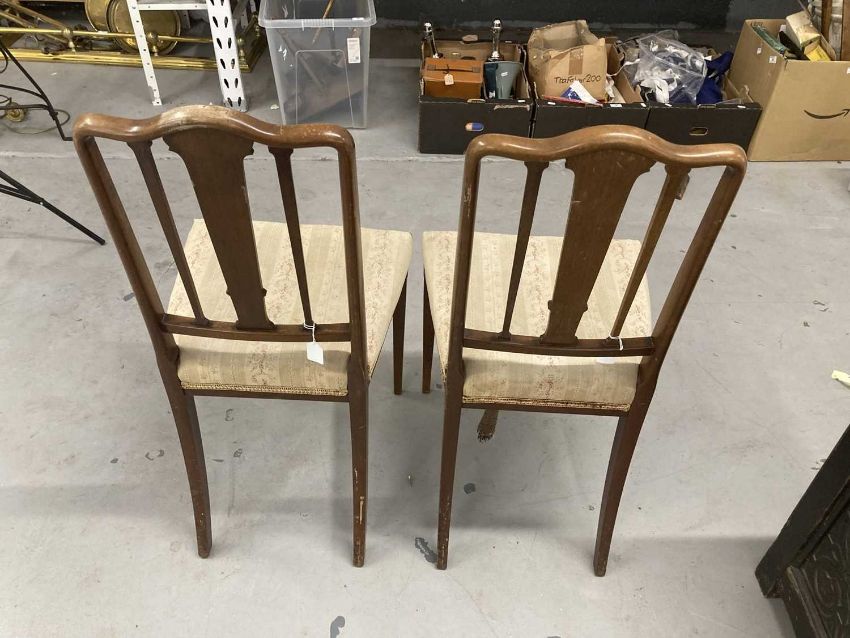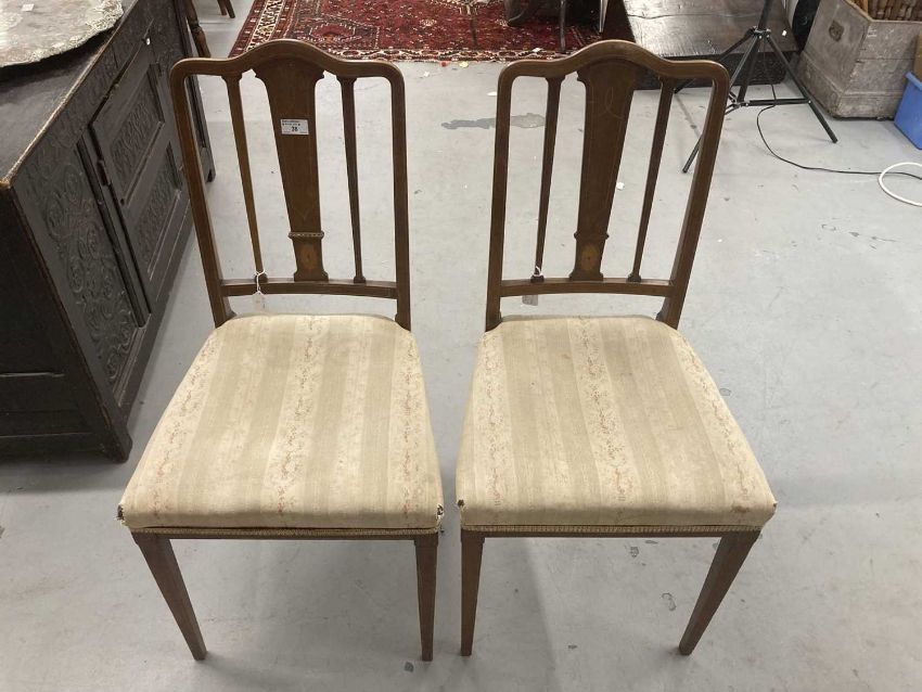 Edwardian Regency Revival mahogany inlaid bedroom chairs believed purchased from Liberty's, a pair.
