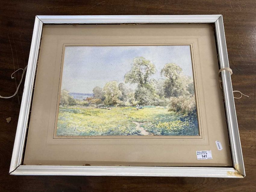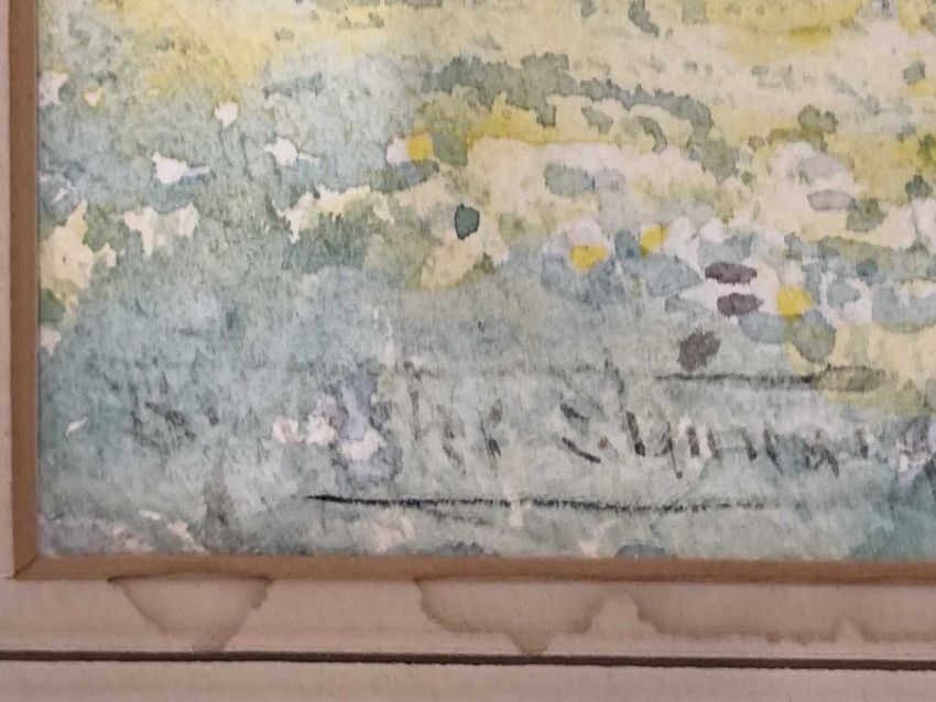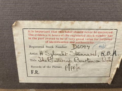 Watercolour 'The Buttercup Bourton on the Water' signed lower left, provenance to reverse with labels and Reg. Stock No.