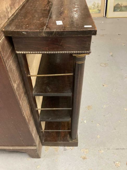 Furniture: Regency rosewood dwarf bookcase with column supports, with faults.