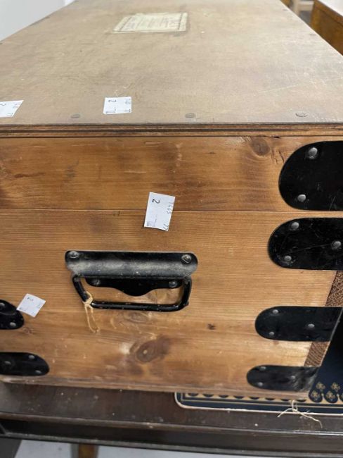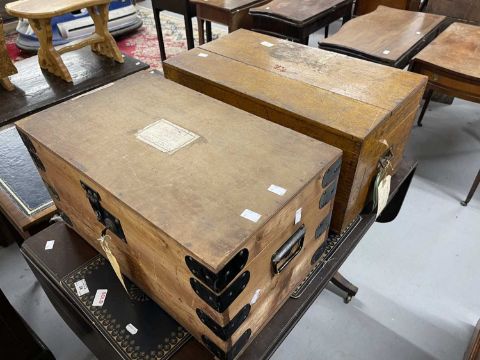 19th cent. Oak silver chest, 60cm x 33cm. Plus a later pine example.