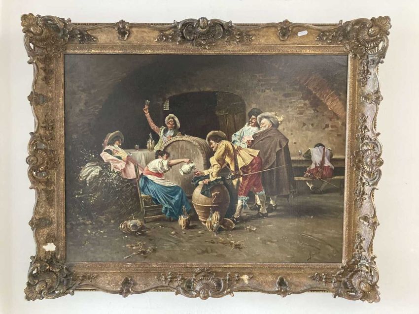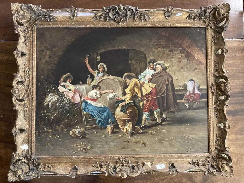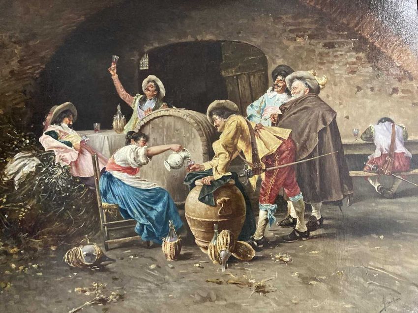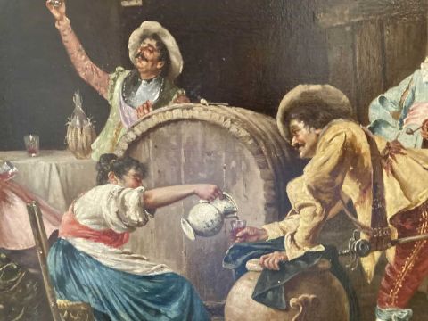 Filippo Marantonio (Italian1863-1937): Oil on canvas revellers in a tavern, signed Marantonio lower right, 60.2cm x 80.6cm.