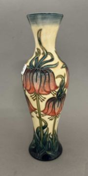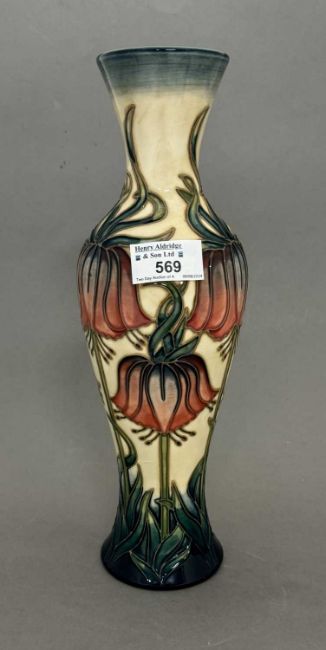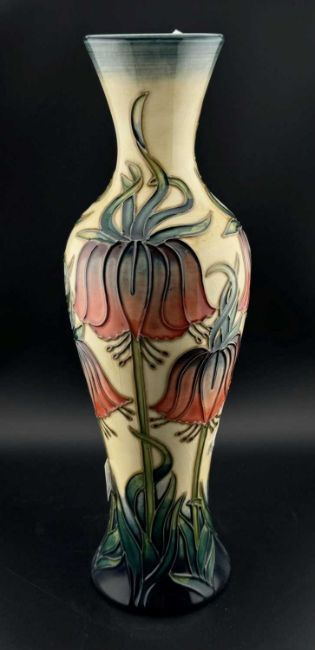 Ceramics: A Moorcroft pottery vase decorated in the Crown Imperial pattern by Rachel Bishop. Date cypher for 1997, numbered 205/600, height 31cm.CONDITION REPORT. Appears to be in good condition free from chips, cracks or repairs. Light glaze crazing all over.