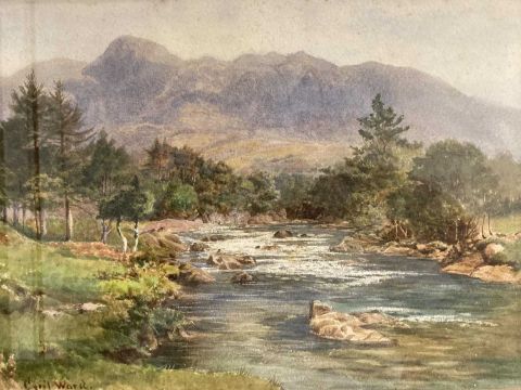 Cyril Ward (1863-1935): Watercolours of landscapes, signed and dated, a pair. 24cm x 53cm.