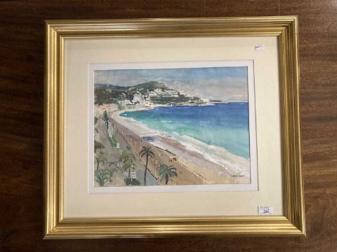 20th cent. English School: Watercolour on paper beach and sea. 43cm x 34cm.