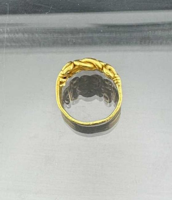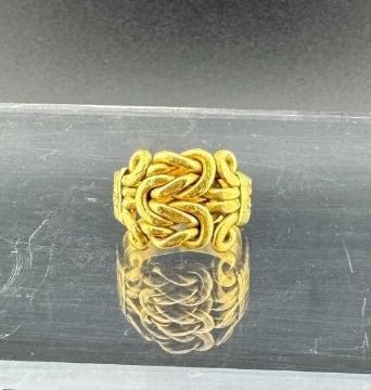 Jewellery: An Indian yellow metal Pavitram ring, comprised of gold wire centring a knot motif, size I, 10.6g. Traditionally used to frighten away evil spirits in Hindu Brahmanic ceremonies.