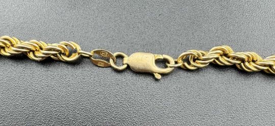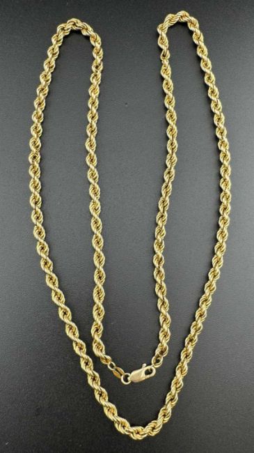 Jewellery: A 9ct yellow gold rope chain necklace, 64cm, 10.0g.