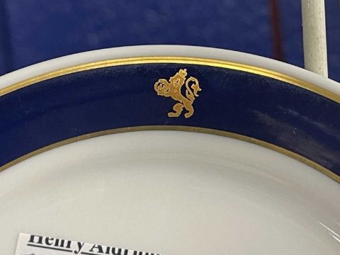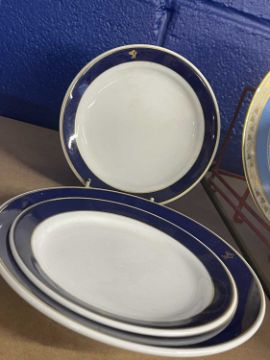 Cunard Line: Four pieces of PorsGrund china as used onboard Vistafjord and QE2 c1995.