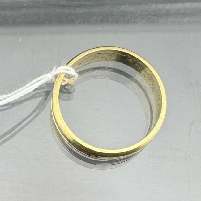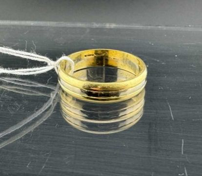 Hallmarked Jewellery: 18ct yellow and white wedding band 5mm wide, size U. Weight 5.5g.