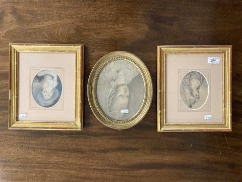 19th cent. English School: Unsigned portraits of ladies, 20cm to 12cm. (3)