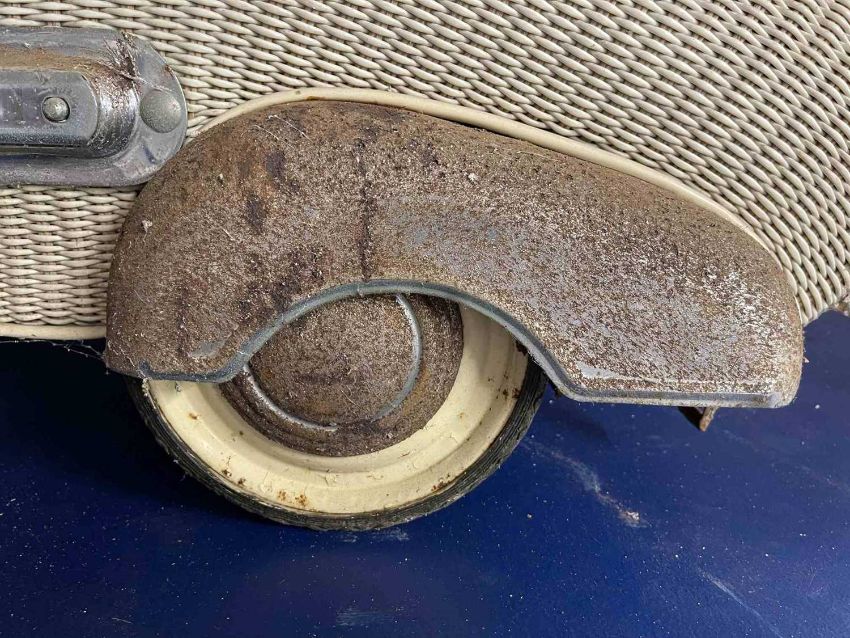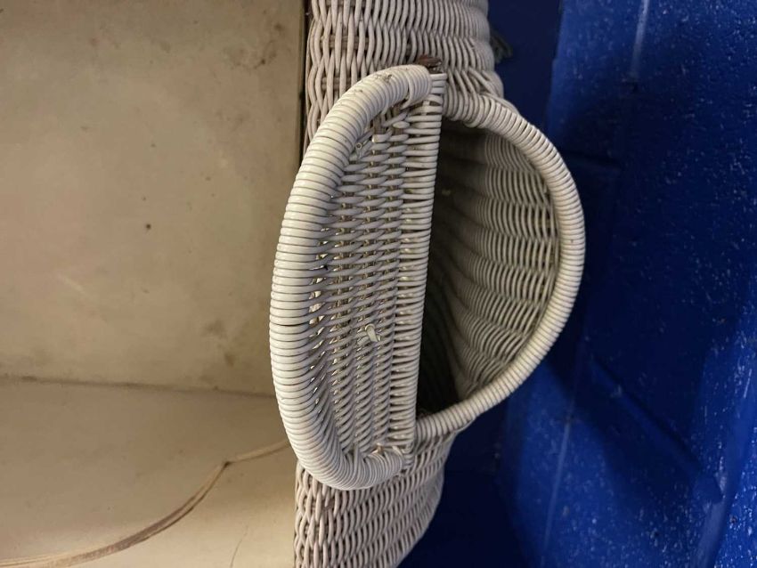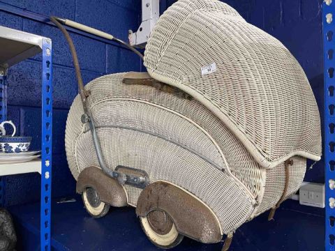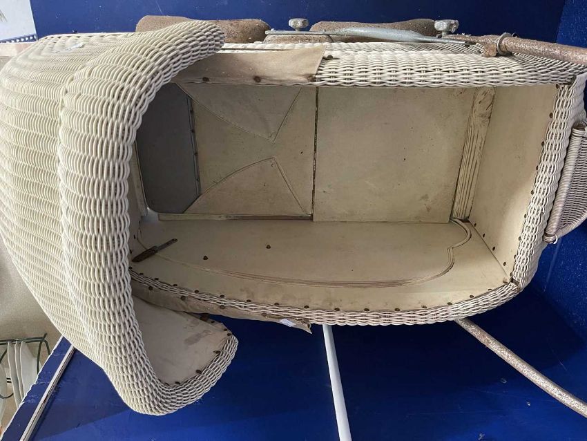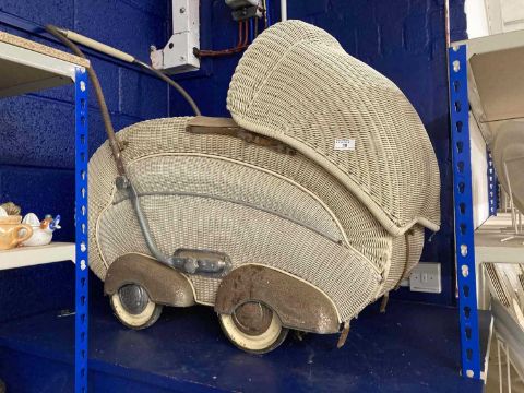 1930s Lloyd Loom style rattan pram in the style of a shell.
