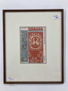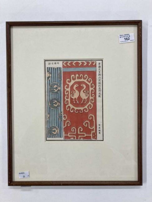 Japanese: Woodblock print 'A Section Of Fabric' circa 1920 - mounted and framed under glass, overall size 41cm x 34cm.