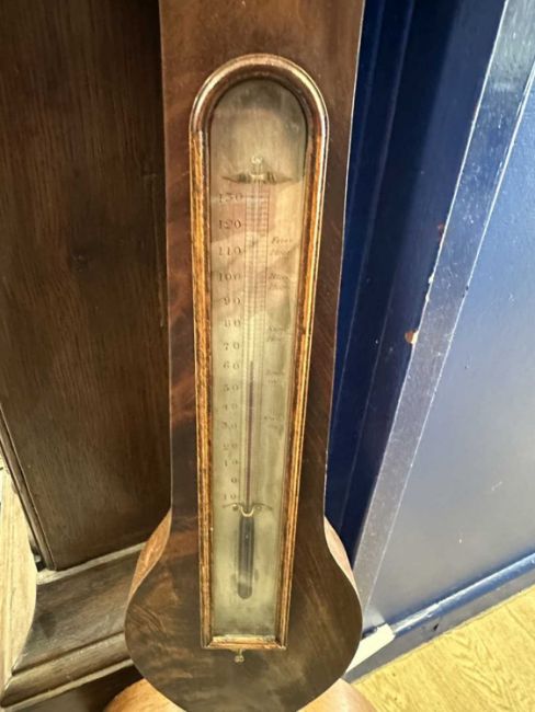 Scientific Instruments: Mahogany cased wheel barometer by John Bromley, born East Grinstead in 1779, moved to Horsham in 1812 until 1839, this was made during that period. Overall height 98cm.