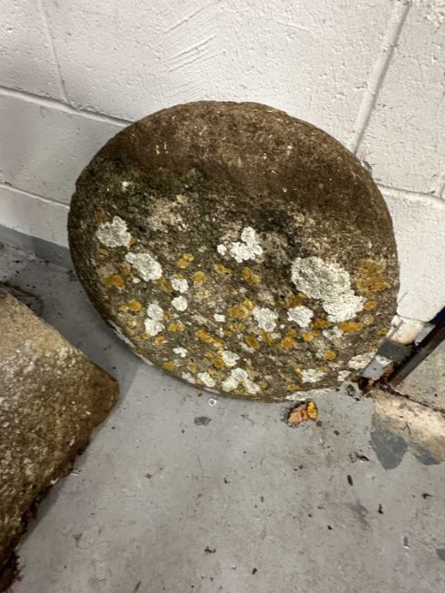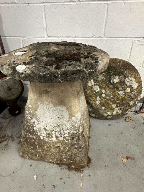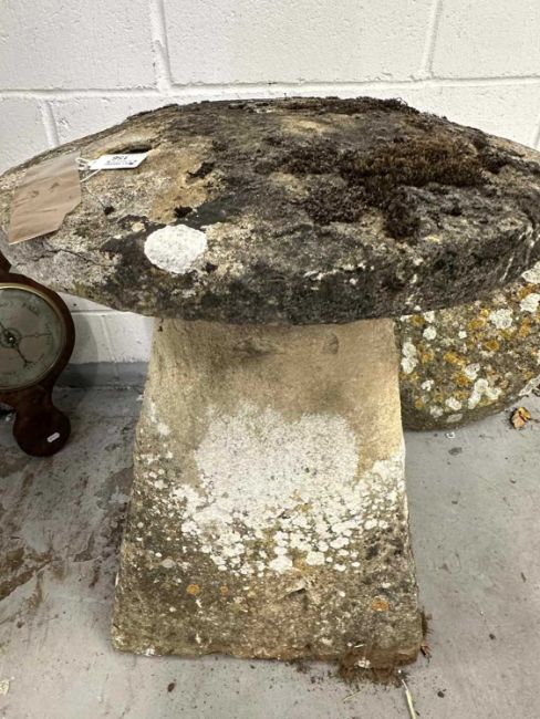 Gardenalia: Reconstituted staddle stone with additional cap, 70cm high, cap 50cm diameter.
