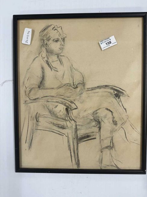 Trio of Portraits: 21st cent. Oil on board, young lady side on portrait turned to the left, 30cm x 35cm, a pencil sketch, seated lady framed under glass c1990-2000, 30cm x 35cm, plus a pencil sketch, seated lady c1950-60 framed under glass, 30cm x 38cm. (3)