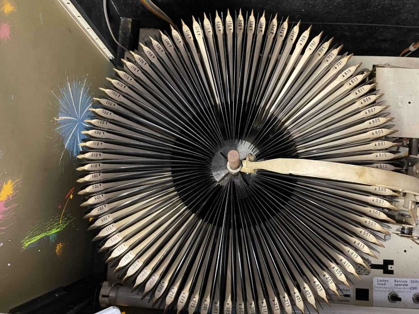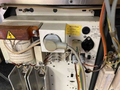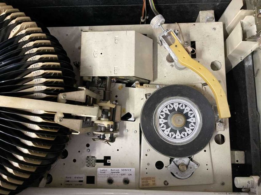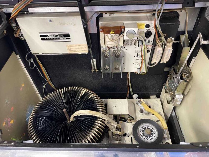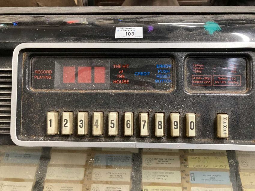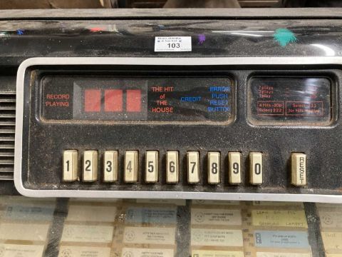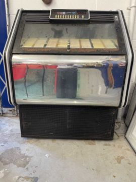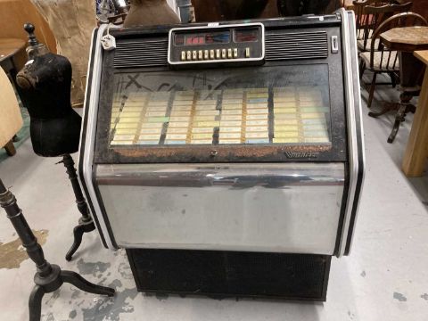 Memorabilia: Mid century jukebox, complete, Model 62409, Type 401, Kom 1 129, untested. Garage stored some rusting on the chrome.