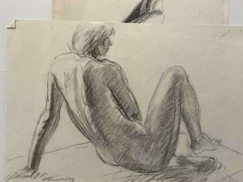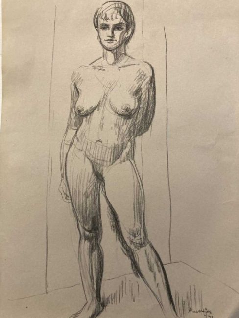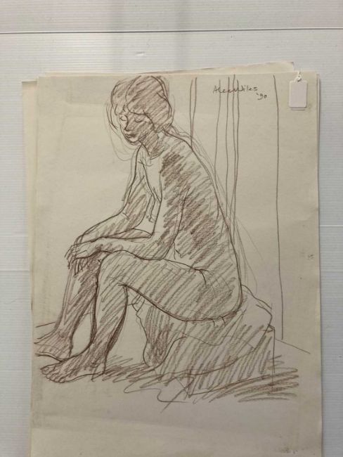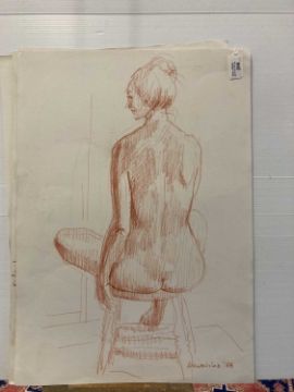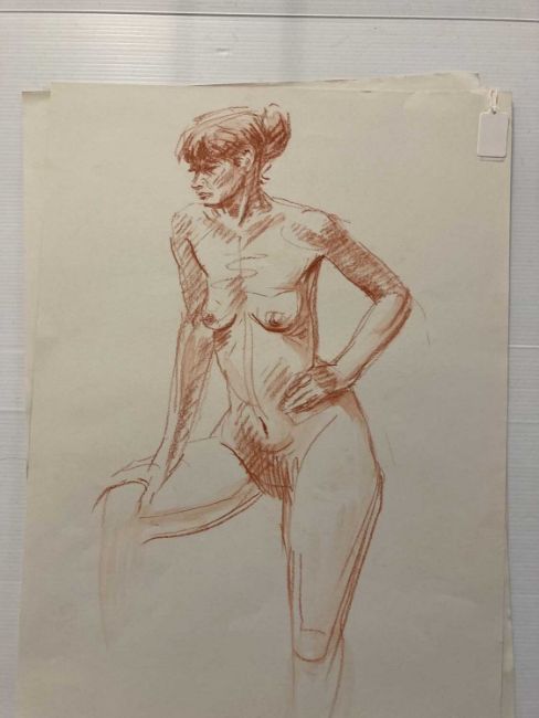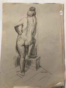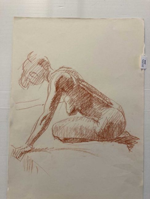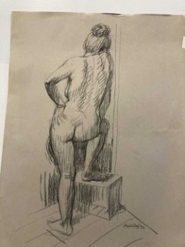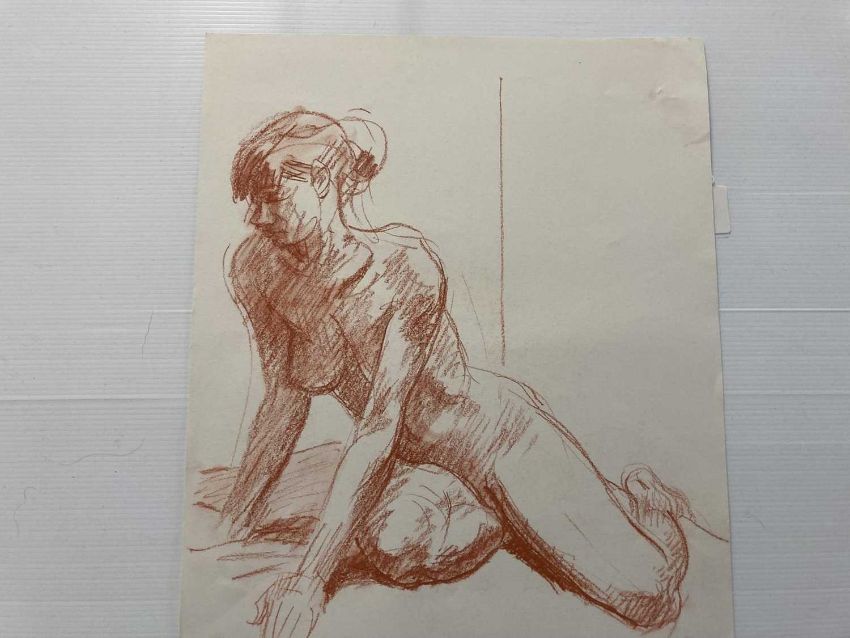 Charcoal on paper studies of nude women signed lower right, unmounted and unframed. Crayon on paper nude studies of a young woman, four signed, all unmounted and unframed. Drawings in charcoal, crayon pencil, studies of nude females, all unmounted and unframed. (20)
