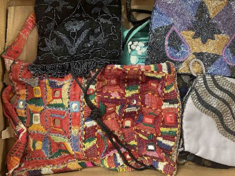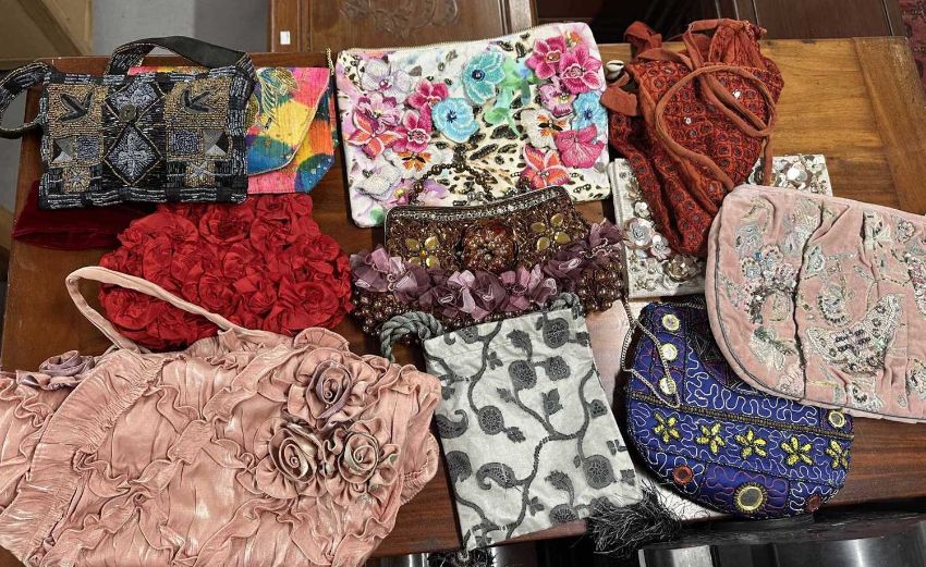 Fashion: Evening Bags one made of red silk roses, others decorated with lavish embroidery. (16)
