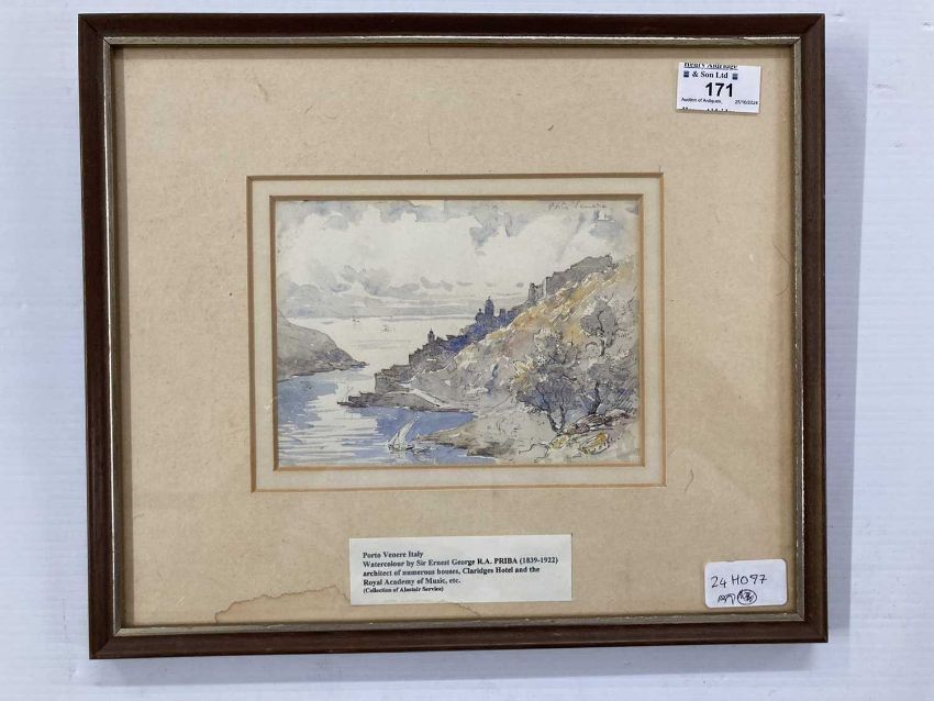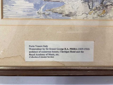 * Sir Ernest George RA (British 1839-1922): Watercolour and pencil Porto Venere, Italy, inscribed in pencil. 125mm x 170mm. From the collection of architectural historian Alastair Service.NB This item may be subject to artist resale rights.