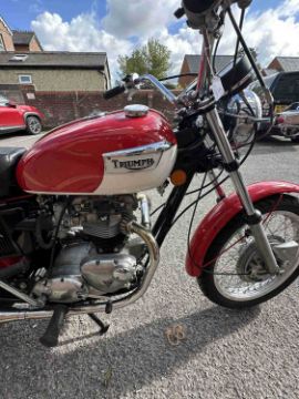 Motorcycles: A 1971 Triumph Bonneville T120R, registration number GAM 425J, registered in the UK 04/10/2021 V5C showing 0 previous keepers. This matching numbers bike was built 30/03/1971 and sent to the USA, then repatriated to the UK, it's had a comprehensive restoration in 2021 costing c. £4000.