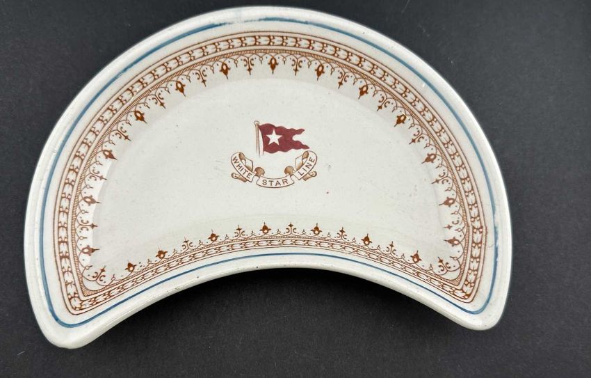 WHITE STAR LINE: Losol ware crescent dish. 8ins.