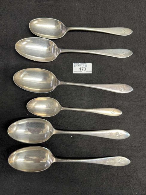 WHITE STAR LINE: First-Class Elkington plate spoons of varying sizes. (6)