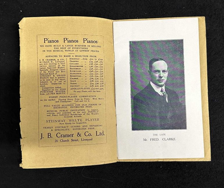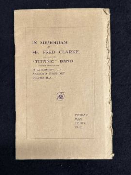 R.M.S. TITANIC: Extremely rare In Memoriam Programme for The Grand Benefit Concert for Titanic's bass violinist John Frederick Preston Clarke on Friday May 10th 1912.