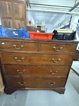 Furniture: 19th Century two over three, Dale chest of drawers. Pine drawer liners with original sullen neck handles and lock bracket support. 100 x 49 x 96cm