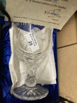 20th Century Glass: Mappin and Webb, a collection of six limited edition royal Brierly Glass goblets commissioned by Mappin and Webb to commemorate the silver jubilee of HM Queen Elizabeth II in a limited edition of five hundred there are Nos. 150, 151, 152 153, 154 and 155. All are boxed with certificates.