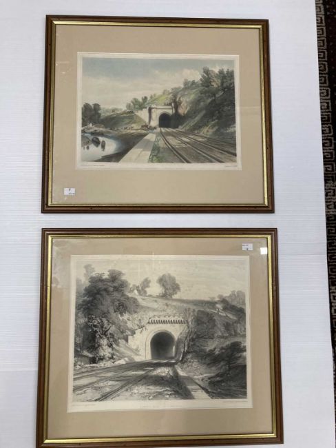 Railway Engravings: 19th cent. Railay engravings were drawn from stone by J. C. Bourne and printed by Cheffins "Long Tunnel Fox's Wood (coloured), "Bridge over the Avon" (black & white), "Tunnel No 2 neon Bristol (black & white) "Sonning Cutting" (black & white foxed). (4)