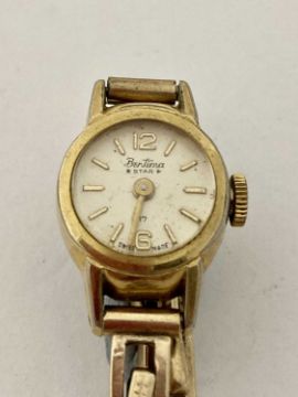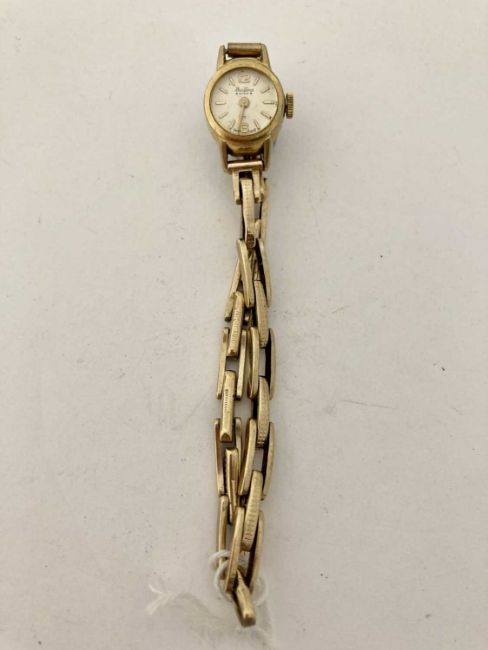 Watches: A ladies Bentima Star wristwatch, gold plated case with sprung 9ct gold strap.