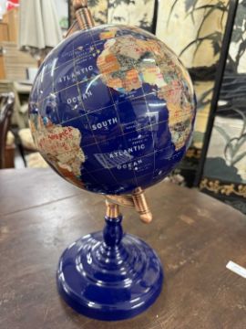 Scientific Instruments: 20th century terrestrial globe lapis and semi precious stones, with text in English and Chinese, globe 9ins, overall height 19ins.