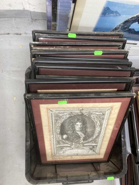 Pictures: Kings and Queens of the Realm series of 47 steel engravings circa mid 19th century sight size 17.5cm x 30cm overall size 30 x 43cm framed under glass.