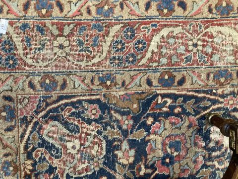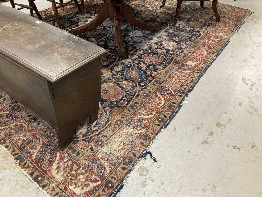 Afghan Heritage Rug: 20th century floral mahal rug 11ft. 4ins x 7ft. 2ins blue ground, red & floral borders, with wear.