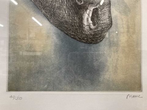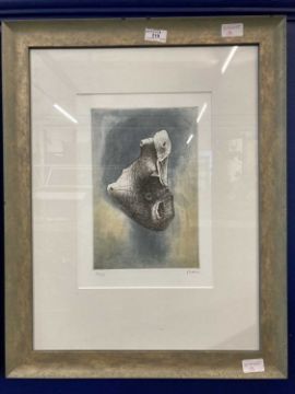 * Henry Moore (British 1898-1986): Signed limited edition etching/aquatint 'Dante Stone III' signed in pencil lower right, 40/50, dated 1977, 54cm x 42cm, framed under glass. With certificate of authenticity from Alex Rosenberg Fine Art, New York. From the album Dante Stones consisting of five etchings based on ideas from Dante Alighieri's Rime Petrose.NB This item may be subject to artist resale rights.