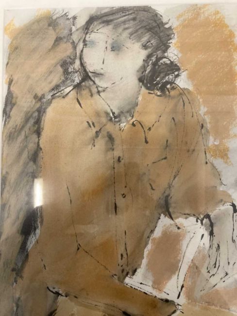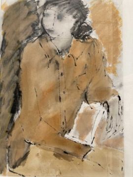 Pictures: John Emanuel British school St. Ives (1930-2024) ''Girl with book'' Mixed media.