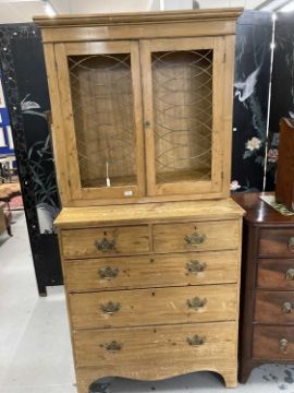 Furniture: 19th century pine two over three chest of drawers with twin door cupboard above.