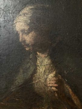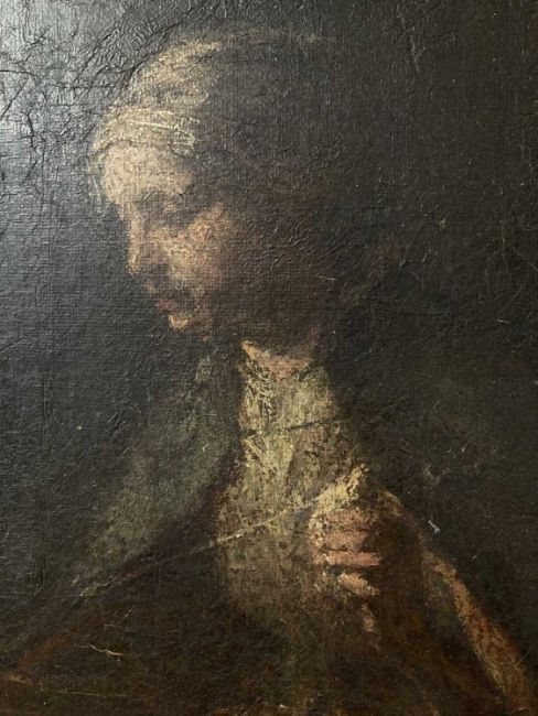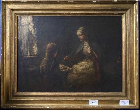 Continental School: Oil on canvas late 18th/early 19th century mother and child winding wool, unsigned, in a giltwood frame.