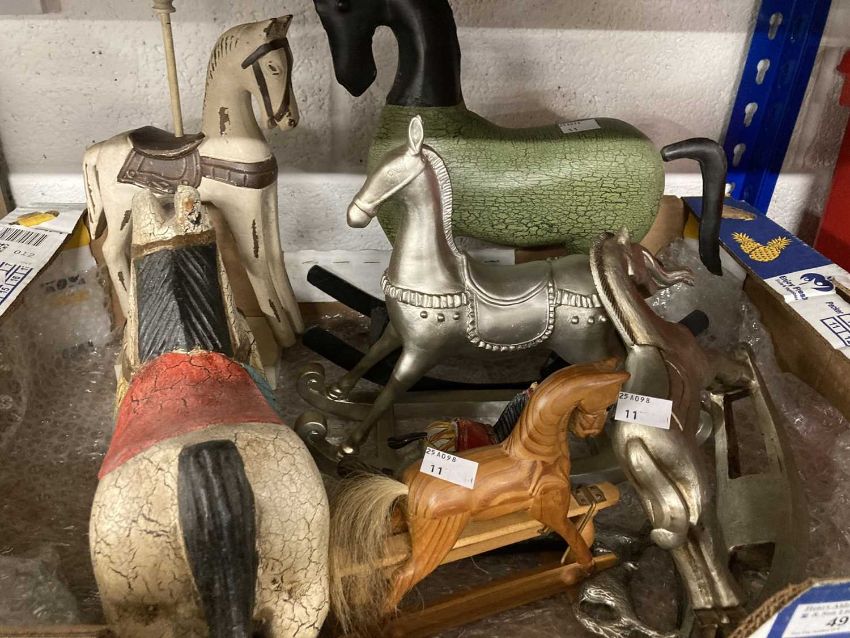 Collectables: Collection of golf-related items including glass club paperweight, cufflinks, History of the Golf Ball desk ornament, etc. Plus 20th cent. treen & metalware ornaments including rocking horses (8), motorcycles (3), Motor Cars (3). (3 Boxes).