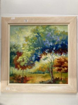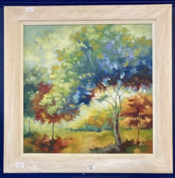 Pictures: Bonnie Helen Hawkins (British Contemperary) ''Frosty morning'' Autumn landscape, signed lower right and dated 1998/ framed in light oak overall size 71cm 17cm in excelent condition with no loses