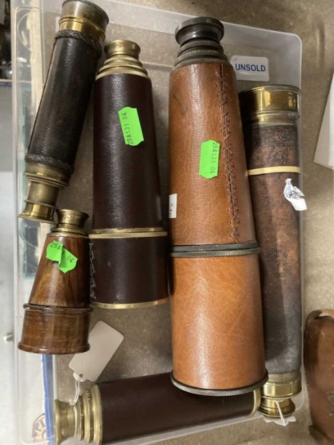 Scientific Instruments: Six telescopes of various sizes, materials and ages, including a 19th century 72cm three draw example by Baker of London and others by Dolland and Ross.
