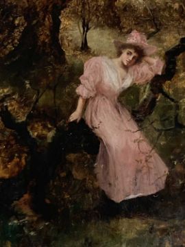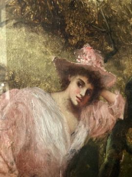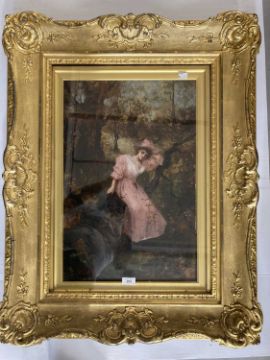 Pictures: 19th century Romantic school portrait of a lady contained in a gilt frame 39x59cm