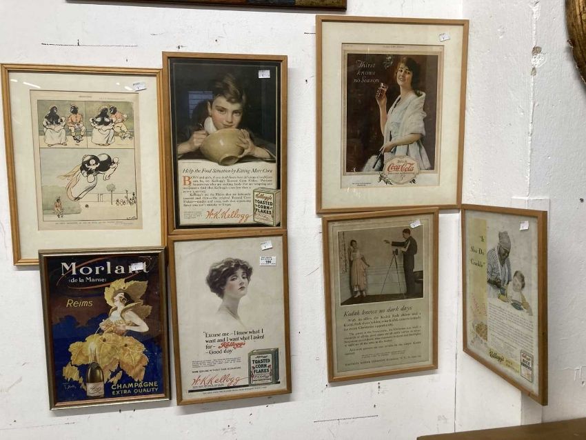 Advertising: Collection of original advertisements dating from 1909 from Kellogg's Cornflakes, Rice Krispies, Kodak and Coca-Cola, 9ins x 12ins. (6)
